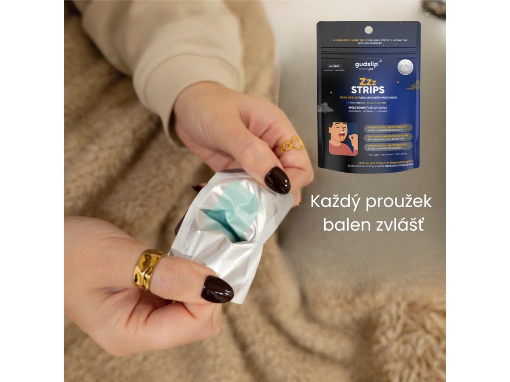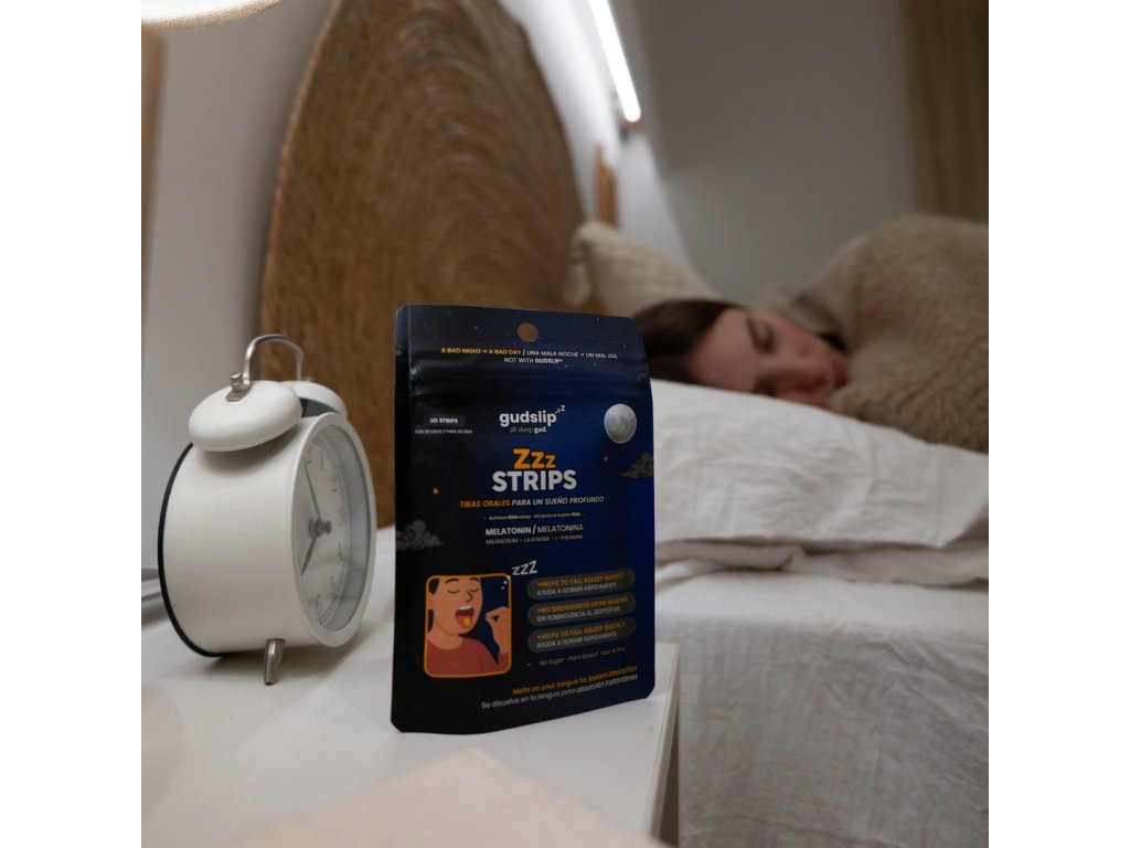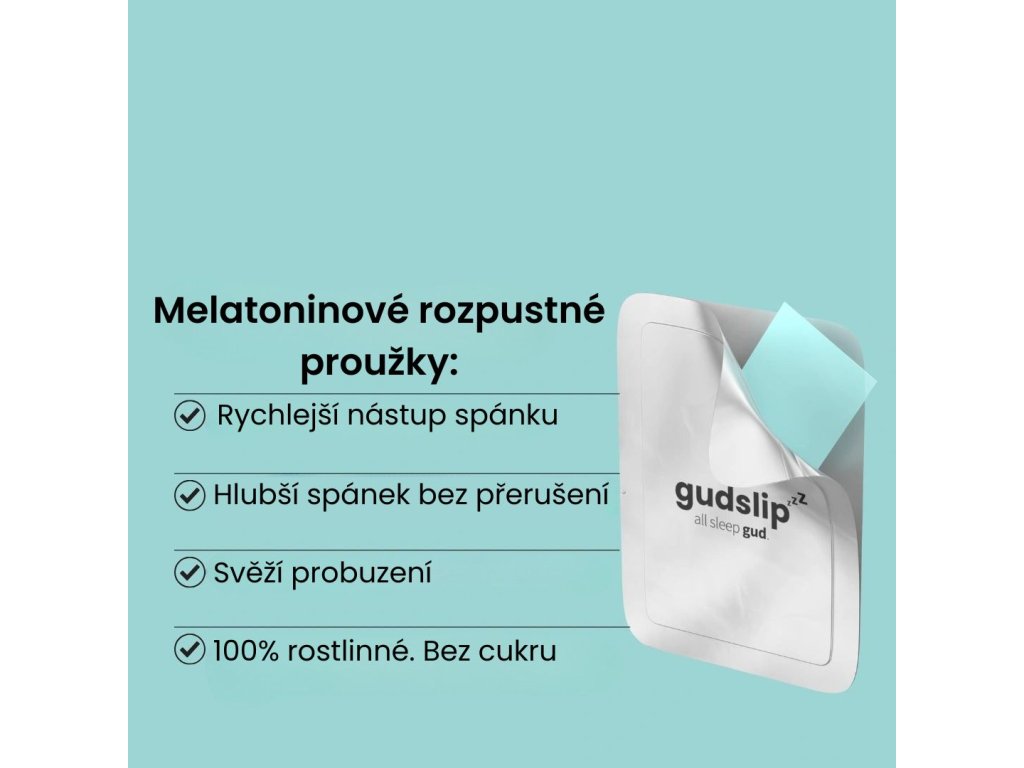 Melatoninové rozpustné proužky Gudslip – rychlá, pohodlná a efektivní podpora usínání, která funguje s vaším tělem, ne proti němu. Perfektní pro moderní životní styl a každý den, kdy chcete spát lépe a vstávat svěží.